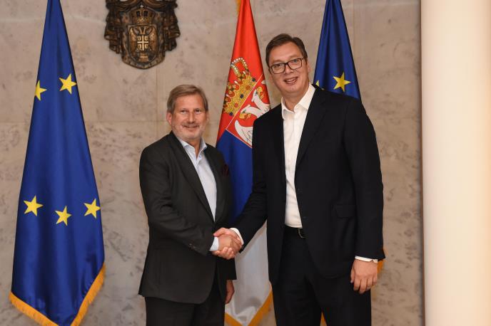 On je zahvalio komesaru Hanu na razumevanju i angažovanju da se dijalog Beograda i Prištine odblokira, navodi se u saopštenju Pres službe predsednika Srbije.