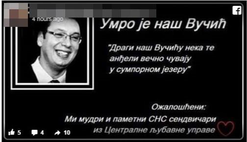 ŠOKANTNO! VUČIĆU SAD OBJAVLJUJU I UMRLICE?! Na Fejsbuku osvanula čitulja posle pretnji smrću i silovanjem njegovoj deci?! (FOTO)