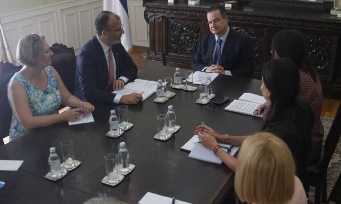 Prvi potpredsednik Vlade i ministar spoljnih poslova Ivica Dačić danas je sa šefom delegacije Evropske unije u Srbiji Semom Fabricijem razgovarao o aktuelnom stanju u odnosima Srbije i Evropske unije u pristupnom procesu za članstvo u EU, kao i o aktivnostima u predstojećem periodu.