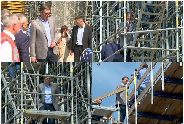JE L' MOŽEMO GORE?! NE MOŽEMO?! MA BAŠ ME BRIGA ZA OBEZBEĐENJE: Vučić se popeo na vrh skele da vidi impresivnu građevinu (FOTO) Foto: Printscreen