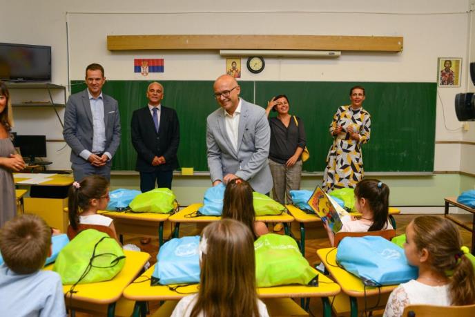 -Imamo izuzetno dobru saradnju sa Gradom Novim Sadom što pokazuju i radovi koji su uspešno izvedeni u ovoj školi. Raduje nas i podrška koja je pružena roditeljima novosadskih prvaka, koji od gradske uprave i društveno odgovorne kompanije dobijaju celokupan materijel za početak školovanja – rekla je Anamarija Viček i čestitala đacima polazak u prvi razred.