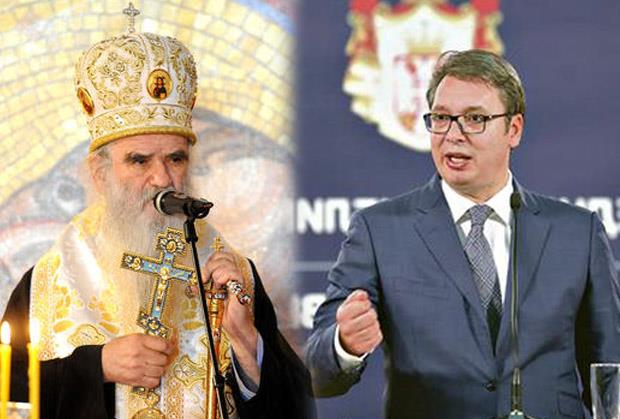 Predsednika Alekdsandra Vučića je, naime, na obeležavanju jubileja u raško - prizrenskoj eparhiji za "potencijalnu" izdaju Kosova i Metohije optužio je mitropolit crnogorsko-primorski Amfilohije.