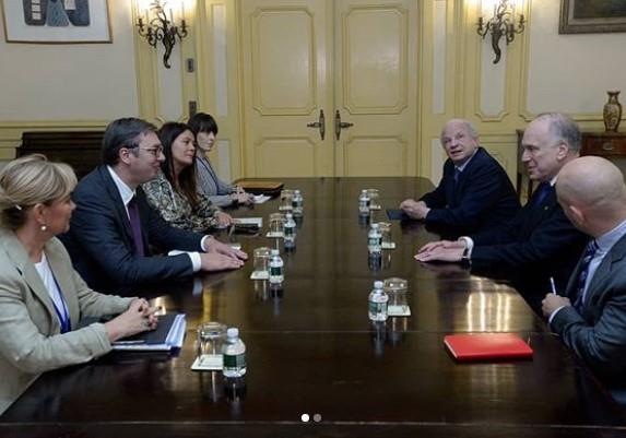 NJUJORK - Predsednik Srbije Aleksandar Vučić sastao se danas u Njujorku sa predsednikom Svetskog jevrejskog kongresa Ronaldom Loderom i tom prilikom rekao da Srbija veoma uvažava jevrejsku zajednicu i poštuje njena prava.