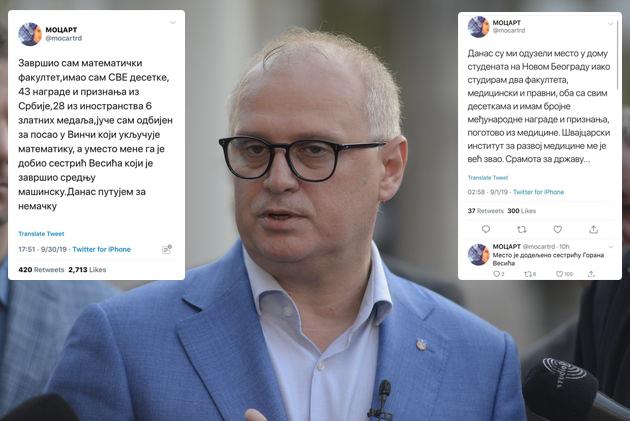 VESIĆ RASKRINKAO ĐILASOVOG BOTA! U jednom tvitu tvrdi da je završio medicinu, u drugom matematički fakultet, a oba puta mu posao ukrao moj SESTRIĆ KOGA NEMAM! (FOTO)