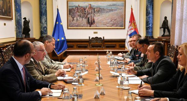 Ministar odbrane Aleksandar Vulin u razgovoru je sa predsedavajućim Vojnom komitetu Evropske unije generalom Klaudiom Gracijanom poručio da je za Srbiju apsolutno neprihvatljivo formiranje tzv. vojske Kosova, te da KFOR predstavlja jedini garant bezbednosti na Kosovu i Metohiji u skladu sa Rezolucijom 1244 Saveta bezbednosti.