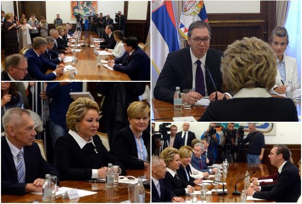 Predsednik Srbije Aleksandar Vučić sastaje se na Andrićevom vencu sa predsednicom Saveta federacije Federalne skupštine Rusije Valentinom Matvijenko.