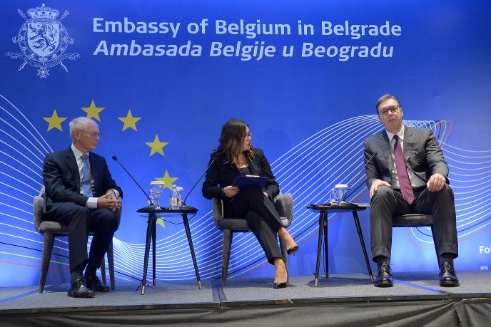 U Beogradu se održala konferencija na kojoj, na temu "EU i Srbija, zajednička sudbina? Belgijska perspektiva", su govorili predsednik Srbije Aleksandar Vučić i bivši predsednik Evropskog saveta i premijer Belgije Herman van Rompej.