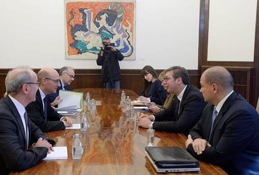 Predsednik Srbije Aleksandar Vučić primio je danas direktora Direkcije za kontinentalnu Evropu Ministarstva spoljnih poslova Francuske Frederika Mondolonija, kome je još jednom zahvalio na svemu što je za odnose Srbije i Francuske učinio tokom svog ambasadorskog mandata u Beogradu.