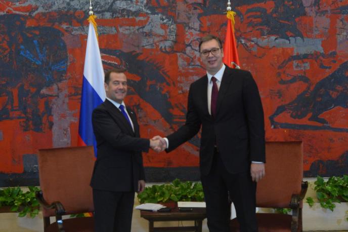 BEOGRAD - Predsednik Srbije Aleksandar Vučić priredio je večeras svečanu večeru za predsednika ruske Vlade Dmitrija Medvedeva i rusku delegaciju.
