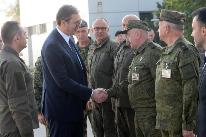 Predsednik Srbije Aleksandar Vučić istakao je, posle obilaska zajedničke taktičke vežbe "Slovenski štit 2019" i ruskih odbrambenih sistema "S400" i "Pancir", da Srbija drastično jača svoje vojne kapacitete, kao i da je, premda mala i nedovoljno jaka zemlja, danas mnogostruko jača nego što je bila.