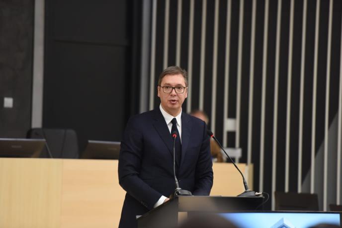 "Ponosan sam i zbog sudija, tužilaca, zamenika, koji će u ovoj zgradi imati bolje uslove, svoje kabinete, ali najvažnije je da će građani koji ovde dolaze videti boljitak i napredak", rekao je Vučić na otvaranju obnovljene Palate pravde.