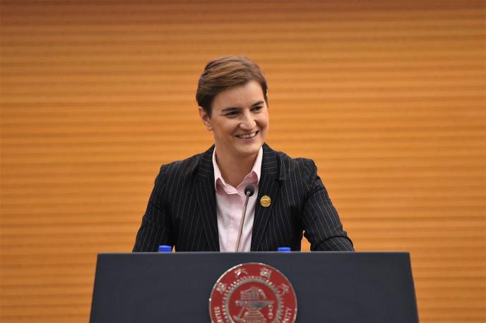 Na pitanje kineskog studenta o saradnji Srbije i Kine, Brnabić je rekla da dve zemlje imaju strateško partnerstvo, da Srbija podržava politiku jedne Kine, dok Kina podržava teritorijalni integritet Srbije i jak je partner koji Srbiju podržava u međunarodnoj arena, pre svega u Ujedinjenim nacijama.