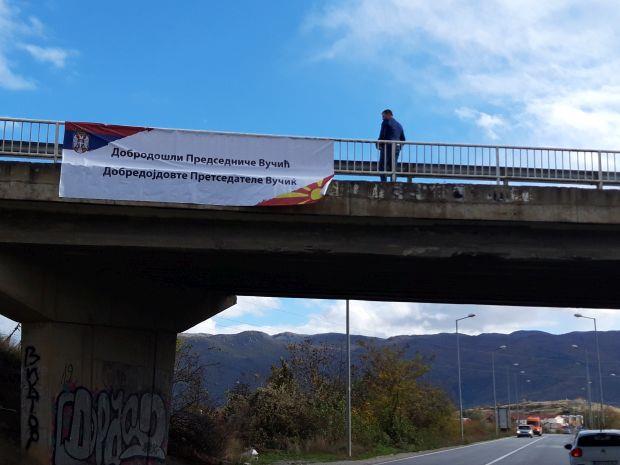 Povodom posete predsednika Vučića Ohridu, Srbi su na ulazu u grad postavili baner na srpskom i makedonskom jaziku sa natpisom "Dobrodošli predsedniče Aleksandre Vučiću".