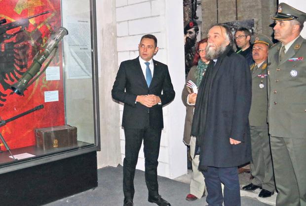Ministar odbrane Aleksandar Vulin i ruski filozof, sociolog i geopolitičar, profesor dr Aleksandar Dugin, obišli su juče izložbu „Odbrana 78“, posvećenu obeležavanju 20-godišnjice od NATO agresije u Muzeju grada Beograda.