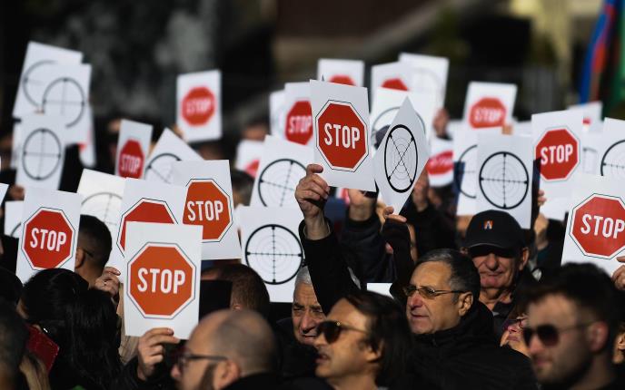 Učesnici protestne povorke nosili su znake "STOP" i transparente "Stop krvavom scenariju" i "Đilase ne ubijaj Srbiju".
