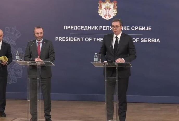 Vučić: Imali smo dobre razgovore, hvala svima na dolasku. Veber je veliki prijatelj celog regiona u koji je danas stigao. U ime Republike Srbije hvala Veberu za pomoć u napretku Srbije.