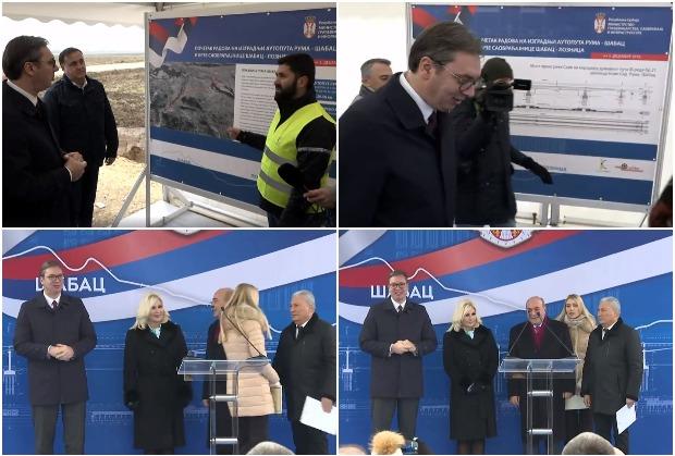 - Mi nećemo da gledamo u mete nego u budućnost - rekao je Vučić i dodao da je veoma hladno i da smo rekli da narod nećemo da zovemo po ovoj hladnoći. On je čestitao i ljudima u Mačvi i Sremu i u celoj Srbiji, te pozdravio i zahvalio se predsedniku Azerbejdžana Alijevu i azerbejdžanskoj braći koja grade ovaj put.