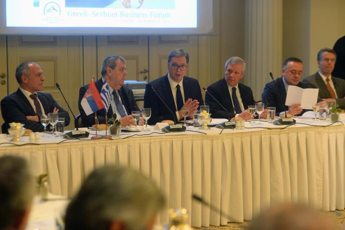Predsednik Srbije poručio je grčkim privrednicima da investiraju u Srbiji i istakao da mnoge evropske kompanije dolaze u našu zemlju, a posebno nemačke, koje zapošljavaju 62.000 ljudi.
