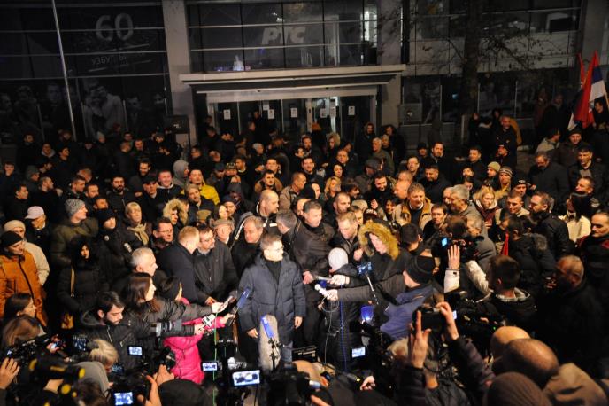 Pristalice opozicije, predvođene Draganom Đilasom, Markom Bastaćem, Vukom Jeremićem, Boškom Obradovićem i drugima, blokirale su u podne sve ulaze u zgradu RTS-a, nezadovoljni izveštavanjem javnog servisa, a blokada je završena večeras oko 20. časova.