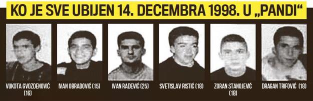 U „Pandi“ su 14. decembra 1998. ubijeni Ivan Obradović (15), Vukota Gvozdenović (16), Svetislav Ristić (18), Zoran Stanojević (18), Ivan Radević (25) i Dragan Trifović (18), a ranjeni su Vlado Lončarević (18), Mirsad Šabović (34) i Nikola Rajović (18).