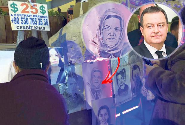 Među crtežima svetskih faca, poput Džejmsa Dina, Muhameda Alija i Bali-bega, na štandu jednog turskog umetnika smeši se i lik šefa srpske diplomatije. Prodavac nije umeo da nam kaže da li ova lokalna heroina neodoljivo podseća na našeg političara ili je zamisao umetnika bila da Dačića zamaskira u staricu s maramom.