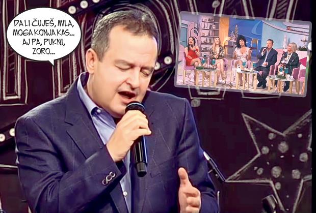 Tome treba dodati i momenat u kome je ministar spoljnih poslova izabrao da se pojavi u ovim emisijama - dok narod na ulicama Crne Gore iz dana u dan ide u protestne šetnje i brani svoje svetinje, Dačić drži mikrofon, peva „Miljacku“ i „Pukni, zoro“ i uveseljava goste.