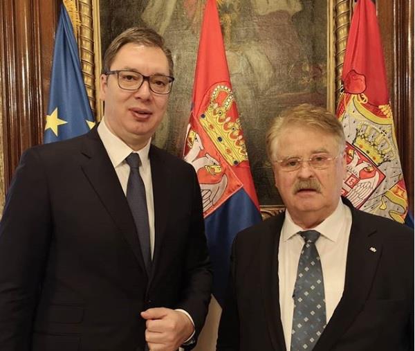 Predsednik Srbije Aleksandar Vučić sastao se danas sa članom nemačke CDU i bivšim evroparlamentarcem Elmarom Brokom.