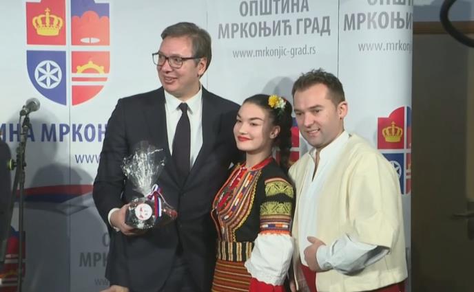 "Nema više oluja i traktora u srpskoj budućnosti, već radnih mesta, škola, obnovljenih domova zdravlja, vrtića punih dece... Hoćemo da živimo zajedno sa drugima, samo nas pustite da budemo svoji na svome i da čuvamo svoje ime i prezime i pradedovsku veru", rekao je Vučić u obraćanju građanima Mrkonjić Grada.