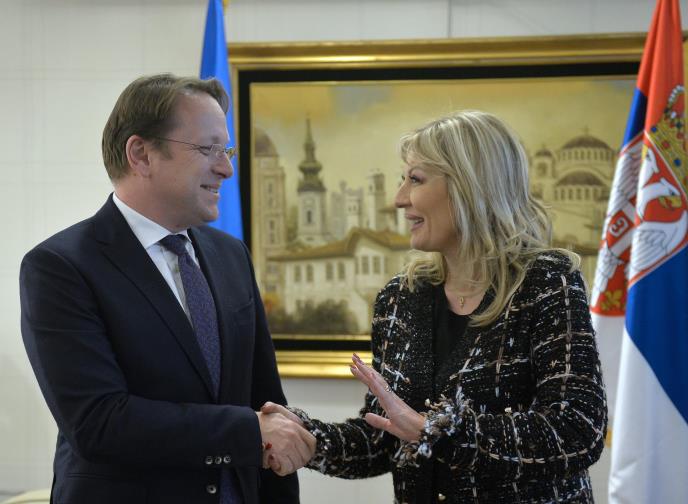 Komesar Varheji će se sastati i sa premijerkom Anom Brnabić, a zajedno sa posrednicima u međustranačkom dijalogu u Srbiji, Tanjom Fajon i Vladimirom Bilčikom, sastaće se i sa predsednicom Skupštine Majom Gojković, kao i predstavnicima političkih stranaka.