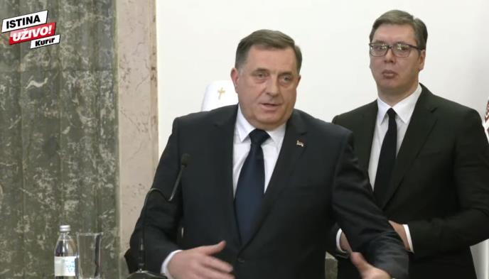 - Mi podržavamo Srbiju I njenu politiku, zahvalni smo za podršku i razumevanje koje nam ona pruža, ali mi imamo naše institucije i sami ćemo donositi odluke, rekao je Dodik na zajedničkoj konferenciji za novinare nakon razgovora predsednika Srbije sa Srbima u regionu.