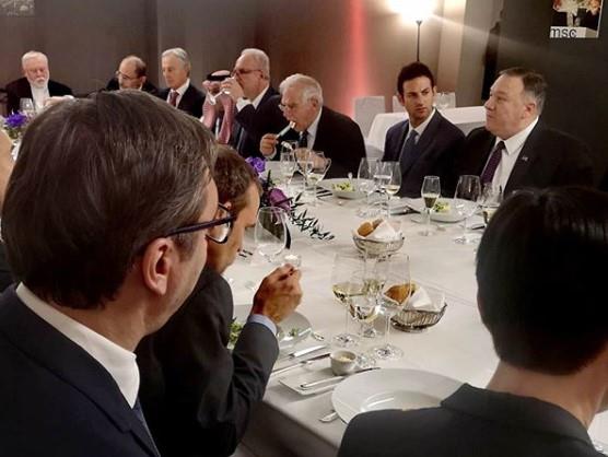 BEOGRAD - Na zvaničnom Instagram nalogu, predsednik Srbije Aleksandar Vučić sinoć je iz Minhena objavio fotografiju sa radne večere na kojoj je bio sa državnim sekretarom SAD Majkom Pompeom, izvršnim direktorom i osnivačem kompanije Jigsaw Džaredom Koenom i predsednikom Svetskog ekonomskog foruma Bergeom Brendeom, koju za odabrane učesnike Bezbednosne konferencije u Minhenu organizuje Svetski ekonomski forum.