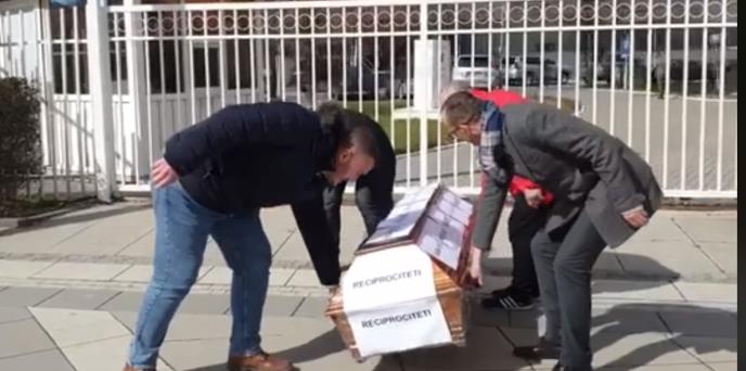 Prema pisanju prištinske Gazete Expres, kovčeg je postavljen ispred parlamenta i simbolizuje "sahranu obećanja" koje je dala aktuelna vlada.