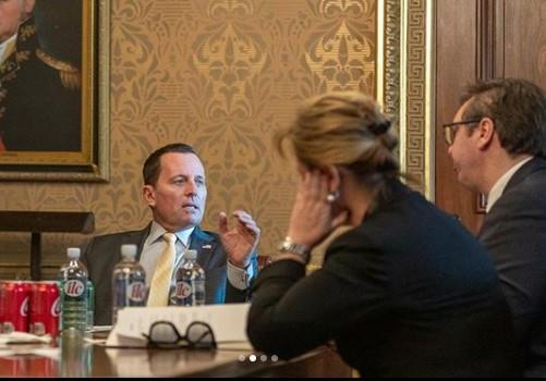 VAŠINGTON - Specijalni izaslanik američkog predsednika Donalda Trampa za dijalog Beograda i Prištine Ričard Grenel objavio je nove fotografije nedavnog sastanka s predsednikom Srbije Aleksandrom Vučićem i predsednikom privremenih kosovskih institucija Hašimom Tačijem u Beloj kući.