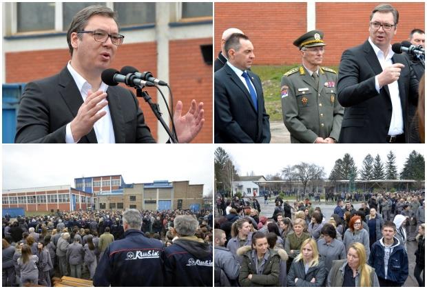 - Došao sam u lice da vam kažem kakvo je stanje u vašem preduzeću. Nažalost nismo uspeli da sačuvamo "Krušik" od raznih glasina, zbog čega su neki u okruženju preuzeli ugovore umesto "Krušika", ali mi dobro znamo da je "Krušik" srce Valjeva i celog ovog okruga i 3.100 ljudi koji ovde rade izdržavaju svoje porodice. Drago mi je da je u januaru prosečna plata 63.000 dinara, ali to je bilo zahvaljujući državnim davanjima, a ne zbog mogućnosti "Krušika". Valjevo bez "Krušika" nije Valjevo bez njega biste svi otišli u Beograd ili inostranstvo. Hoću da ostanete ovde da živite, zato ćemo nastaviti s velikim ulaganjima u "Krušik" i Valjevo. Govorimo o desetinama miliona evra iz tekućeg budžeta.