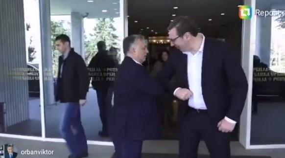 Predsednik Srbije Aleksandar Vučić objavio je danas na Instagram profilu "budućnostsrbijeav" video u kome se vidi kako se pozdravlja sa mađarskim premijerom Viktorom Orbanom laktovima, a ne rukovanjem.