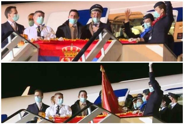 Hrabra posada aviona erbas A330 "Nikola Tesla" koji je dopremio dragocenu pomoć i medicinske eksperte iz Kine po sletanju izašla je i razvila srpsku i kinesku zastavu u znak pozdrava srpskom i kineskom narodu koji su se pokazali kao iskreni prijatelji spremni da pomognu kada je najteže.