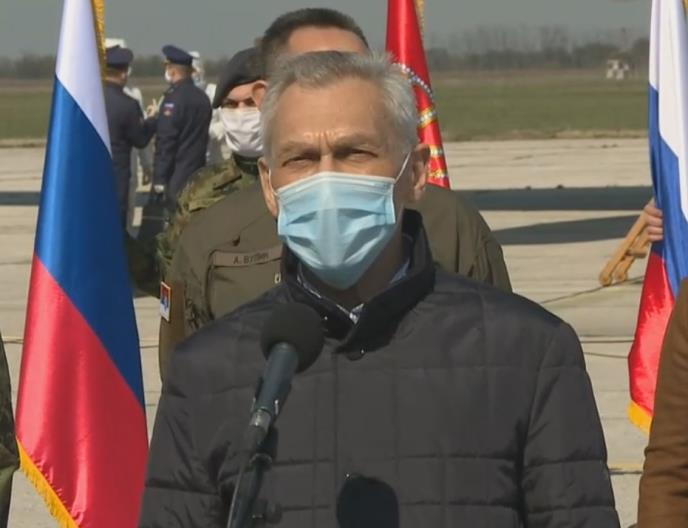 Ambasador Rusije Aleksandar Bocan Harčenko izjavio je, nakon sletanja prvog Iljušina sa medicinskom opremom i ruskim stručnjacima za Srbiju, da se pomoć Srbiji šalje na osnovu dogovora predsednika Srbije i Rusije, Aleksandra Vučića i Vladimira Putina, kao i da je to još jedna potvrda prijateljstva dve države i srpskog i ruskog naroda.