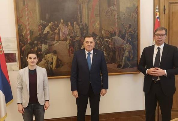 Predsednik Srbije Aleksandar Vučić i premijerka Ana Brnabić sastali su se danas sa srpskim članom Predsedništva Bosne i Hercegovine Miloradom Dodikom.