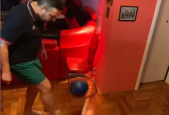 U doba korone i policijskog časa trenira sina u kući i pokazuje mu finte koje smo videli na terenu i kada je branio boje naše parlamentarne ekipe u fudbalu.