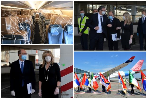 Pomoć je otpremljena sa Aerodroma "Nikola Tesla", gde se uz predsednika Vučića našao i ambasador Italije u Srbiji Karlo lo Kašo.