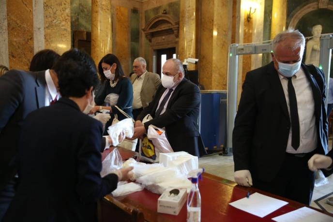 Svi poslanici i učesnici zasedanja su dobili maske i rukavice, a na raspolaganju su im i dezinfekciona sredstva.