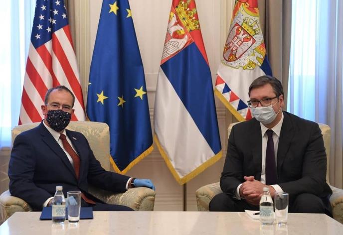 “Prijatelji, kakvi su Srbija i SAD, oslanjaju se jedni na druge i u neizvesnim vremenima, kakvo je vreme pandemije”, saglasili su se predsednik Vučić i ambasador Godfri.