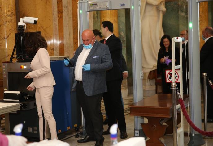 Poslanici su na prvu sednicu od početka vanrednog stanja došli maskirani "u fulu" a u samom holu parlamenta su posle merenja temperature dobili novu i čistu zaštitu pre ulaska u salu.