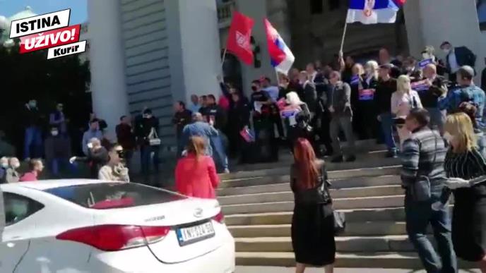 U jednom trentuku je umalo došlo do koškanja, jer su neki poslanici hteli da uđu u zgradu Skupštine, gde bi trebalo da počne nova sednica.