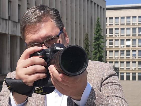Predsednik Republike Srbije Aleksandar Vučić iskoristio je pauzu u radnim obavezama da se pozabavi rukovanjem fotoaparatom.