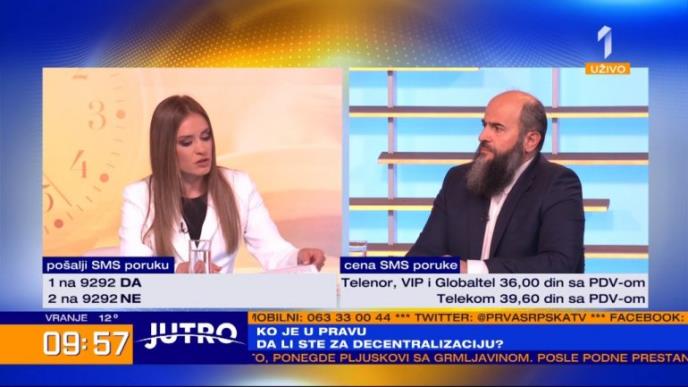 Predsednik Stranke pravde i pomirenja Muamer Zukorlić i član Predsedništva Srpske stranke Zavetnici Milica Đurđević Stamenkovski verbalno su se sukobili tokom gostovanja u jutarnjem programu TV "Prve".