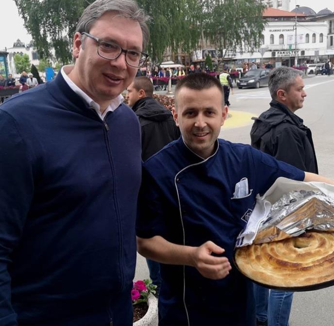 Predsednik Srbije Aleksandar Vučić, koji boravi u Novom Pazaru, danas je naišao na toplu dobrodošlicu lokalnog stanovništva a jedan od lokalnih pekara je predsedniku spremio i poklon dobrodošlice.