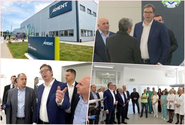 Nakon obilaska rekonstruisane Opšte bolnice u Loznici, predsednik Srbije Aleksandar Vučić došao je na otvaranje nove fabrike "Adient".