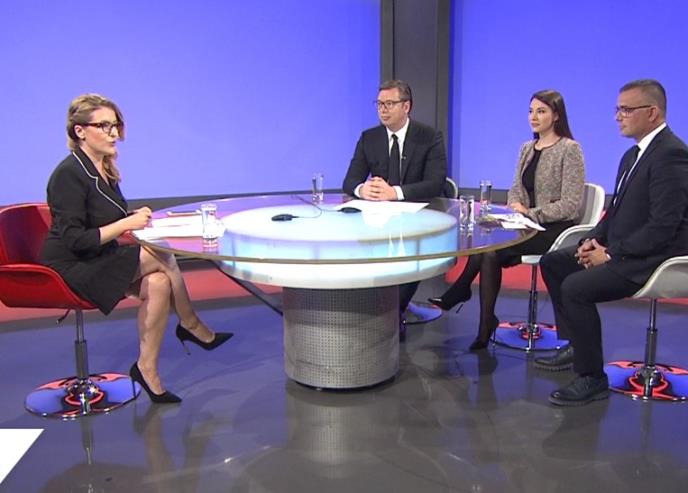 "Za nas je od posebnog značaja da pokažemo poštovanje prema ovoj kući, ali i građanima, da ne šaljemo video materijale, i došli smo u studio da se predstavimo, da kažemo šta smo uradili, ali pre svega o planima, i da damo ocenu kampanje", rekao je Vučić.