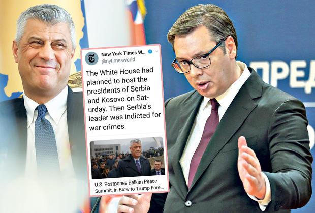 Najpoznatiji američki list Njujork tajms na Tviteru je objavio da je sastanak u Vašingtonu otkazan jer je lider Srbije optužen za ratne zločine.